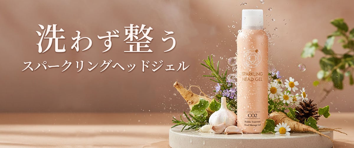 「洗い流さない頭皮用ヘッドスパ」 スパークリングヘッドジェル パチパチ弾ける高濃度炭酸ジェル泡で、手軽に頭皮エステ。 心地よい刺激が頭皮をリフレッシュし、健やかな頭皮環境へ導きます。 洗い流し不要で、忙しい日でも簡単にケアできます。 エッセンシャルオイル配合。 気分をリセットするリフレッシュアロマの香り。 特徴成分 ◇ クダモノトケイソウ果実エキス パッションフルーツ由来の成分。 リンパの流れを整え、老廃物や余分な水分の排出をサポートします。 ◇ 加水分解ケラチン 毛髪に柔軟性を与え、帯電を防止。 髪を保護し、カラーやパーマによるダメージを防ぎます。 ◇ パンテノール 水溶性ビタミン(プロビタミンB5)。 新陳代謝を活発にし、コンディショニング効果を与えます。 12種類の植物エキス配合 甘草エキス(グリチルリチン酸2K) ・抗炎症作用により、荒れた頭皮環境を整え、フケ・かゆみを防ぎます。 ニンジンエキス ・代謝促進・血行促進作用により、フケ防止が期待できます。 カキタンニン ・優れた消臭作用で、頭皮の気になるニオイを抑えます。 その他の植物エキス フケ防止・皮脂抑制・抗菌・消臭を目的に配合 ・ニンニクエキス ・ローマカミツレエキス ・ゴボウエキス ・アルニカエキス ・ローズマリーエキス ・セイヨウキズタエキス ・オドリコソウエキス ・マツエキス ・オランダカラシエキス 6つのフリー処方 ・着色料不使用 ・鉱物油不使用 ・石油系界面活性剤不使用 ・パラベンフリー ・紫外線吸収剤不使用 ・合成香料不使用